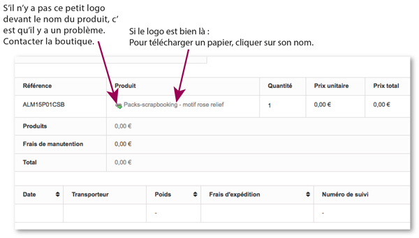 Il arrive parfois que le mail ne parvienne pas jusqu'à vous. Heureusement, grâce à votre compte vous avez accès aux détails de vos commandes où vous pouvez télécharger vos papier scrap imprimable.